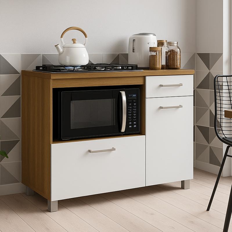Possui nicho para forno e conta com resistentes puxadores ergonômicos, que facilita o manuseio!