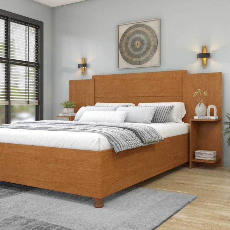 Estrutura 100% MDP 15mm, Painel Cabeceira Sobrepostos, 2 Mesas de Cabeceiras Laterais com 2 Prateleiras para Objetos Pessoais, Sapatas Plásticas de PVC e Acabamento em Pintura UV Brilho e Semi-Brilho.