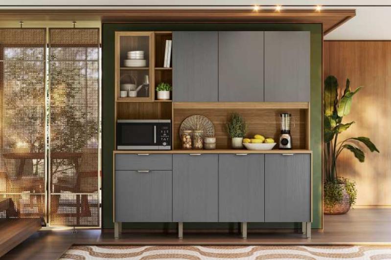 Estrutura 100% MDP 12mm e 15mm, 8 Portas de Bater com Dobradiças Metálicas Slow Motion, sendo uma Porta com Vidro, 1 Ampla Gaveta com Corrediças Metálicas Telescópicas, Puxadores Ergonômicos em Alumínio, 1 Prateleira Externa e 4 Internas, 4 Nichos Externos: 1 Nicho para Fornos Elétricos com Passa Fios, 2 Nichos Superiores para Itens Decorativos ou Utensílios Culinários e 1 Amplo Nicho sobre o Balcão para Eletrodomésticos e Demais Utensílios, Pés Plásticos Reguláveis e Acabamento em Pintura UV Semi-Bilho e Fosco Texturizado.