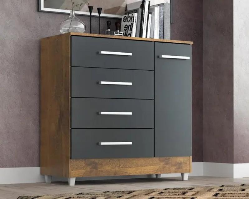 Estrutura 100% MDP, 4 Gavetas com Corrediças Metálicas, 1 Portas de Bater com Dobradiças Metálicas,