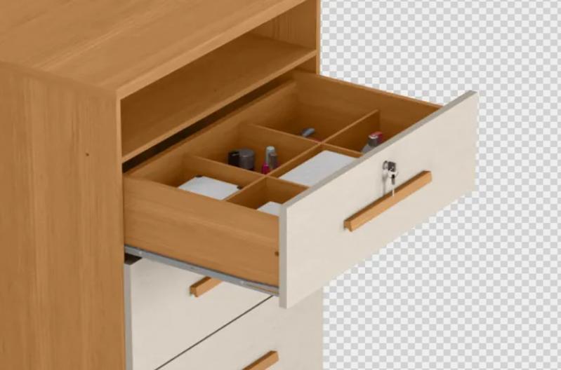 Estrutura 100% MDP 12mm e 15mm - 4 Gavetas com Corrediças Metálicas, sendo a 1ª com Divisórias e Chaves,