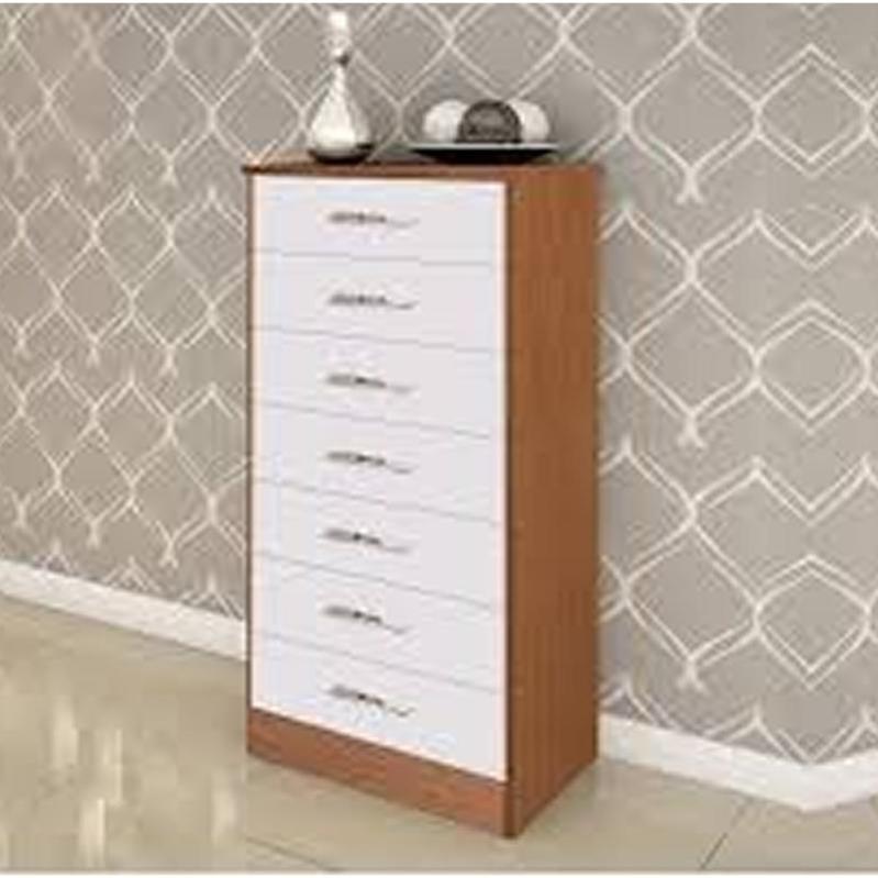 Estrutura 100% MDP, 7 Gavetas com Corrediças de Madeira e Puxadores Plásticos Cromados.