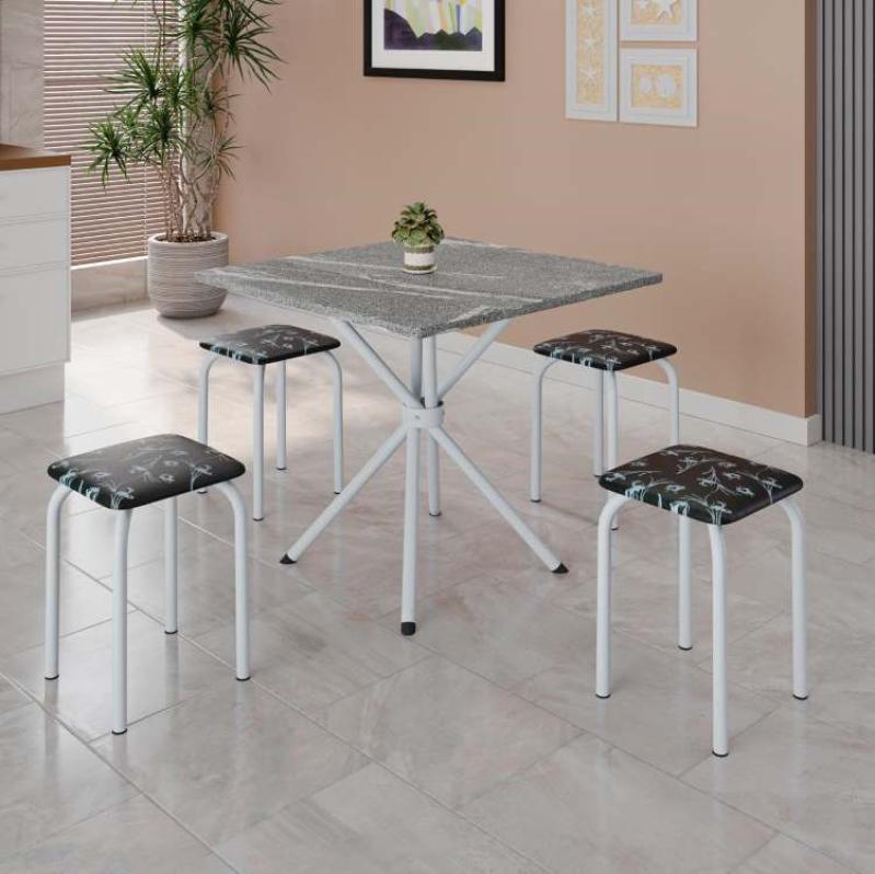 Estrutura Tubular 1 1/4 100% Aço Carbono em Pintura Epoxxi e Assento com Base de MDF Revestido em Ratan Estampado Lirio Preto e Sapatas Plásticas de PVC.