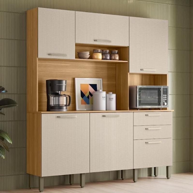 Apresentamos o Kit Cozinha Paraná Ferrara com 6 portas, 2 gavetas e nicho. Com design moderno e funcional, oferece amplo espaço de armazenamento para utensílios de cozinha. Fabricada com materiais de qualidade, possui portas e gavetas deslizantes. A combinação de cores confere um visual sofisticado. Adquira o Kit Cozinha Paraná Ferrara e tenha uma cozinha prática e estilosa.