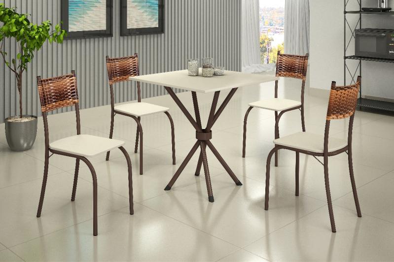 Conjunto Mesa Atlanta 70x70 - Cor Branco/Pedra Preto