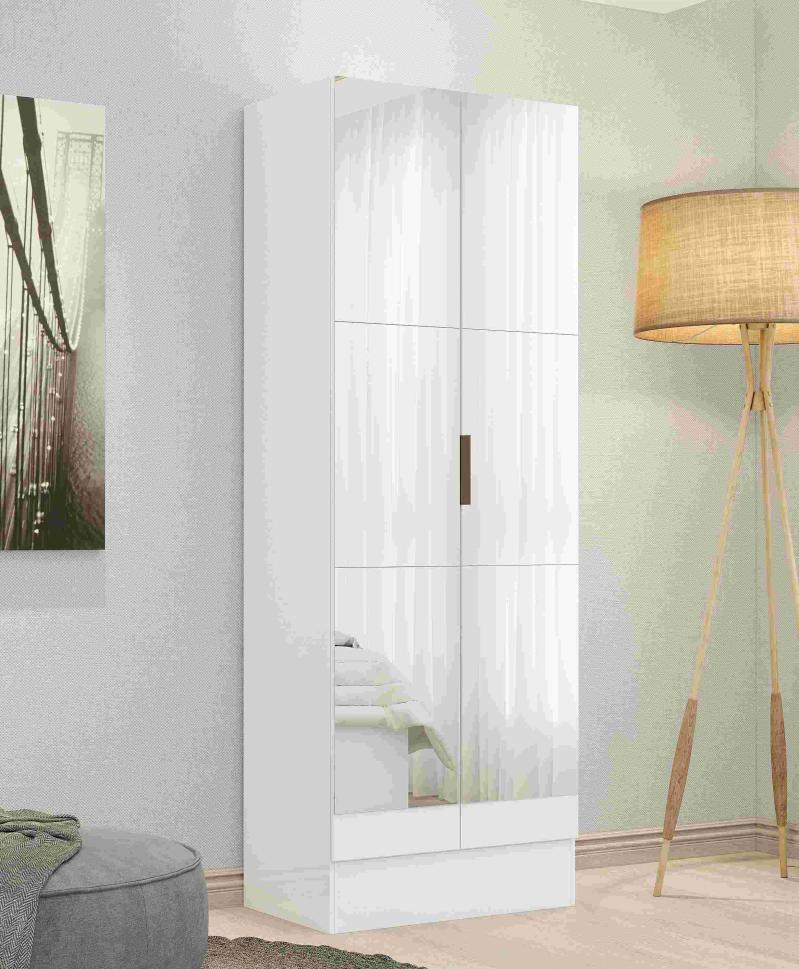 Estrutura 100% MDP 12mm, 2 Porta de Bater com Dobradiças Metálicas de Pressão, sendo que um com Espelhos, 5 Nichos Internos de 0,315cm x 0,516cm, Divididos por 4 Prateleira, Puxador de Alumíno Escovado, Sapatas Plásticas de PVC e Acabamento em Pintura UV Semi-Brilho.